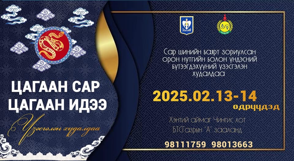 Орон нутагт үйлдвэрлэсэн бүтээгдэхүүн, үйлчилгээг олон нийтэд сурталчлан таниулах, бизнесийн түншлэлийн харилцааг тогтоох, хүн амыг чанартай, стандартын шаардлага хангасан бүтээгдэхүүнээр хангах зорилгоор уламжлал болон зохион байгуулагддаг “ЦАГААН САР-ЦАГААН ИДЭЭ” -2025 үзэсгэлэн худалдаа 2025 оны 02 дугаар сарын 13,14-ний өдрүүдэд БТСГазрын “А” зааланд зохион байгуулагдана.